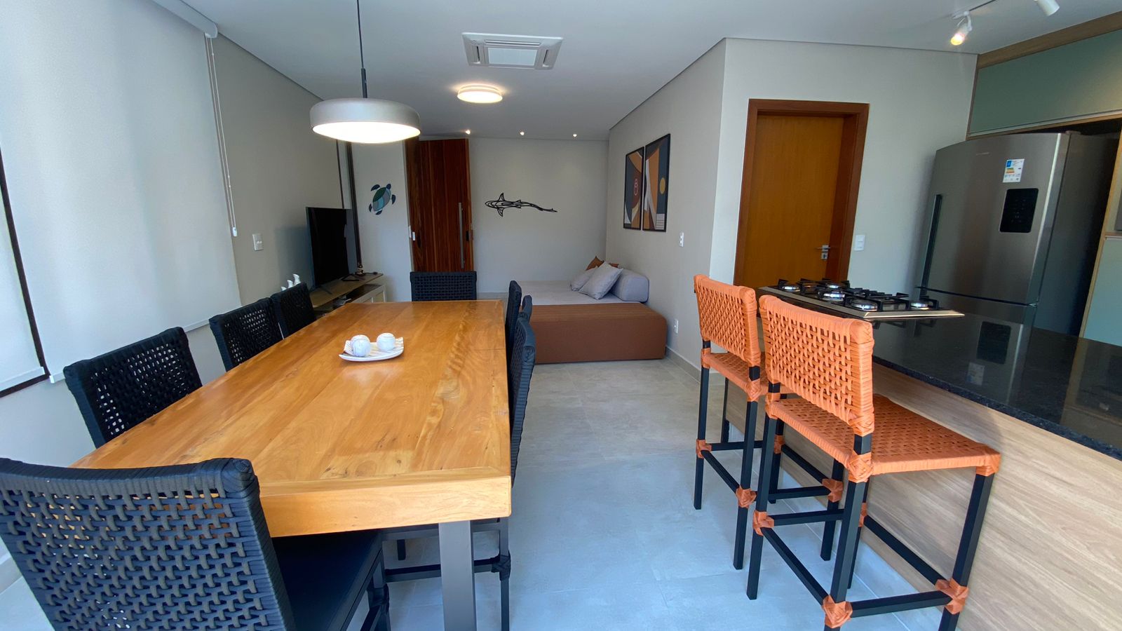 2 vagas de garagem, espaço gourmet com churrasqueira e serviço de praia.
