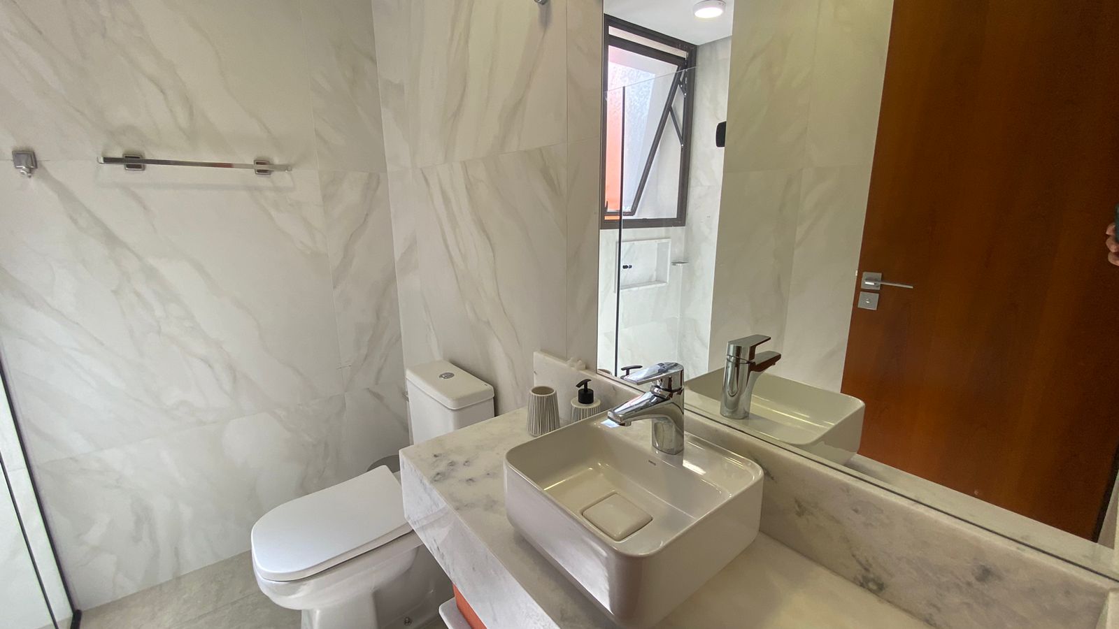 Projeto moderno, com 4 suites, lavabo, mezanino, solarium, piso porcelanato Portobello, armários planejados, louças e metais Deca, tomada para carro elétrico, portaria 24 horas, fechadura eletrônica, gás canalizado, água aquecida em todos os ambientes, piscina privativa aquecida.
