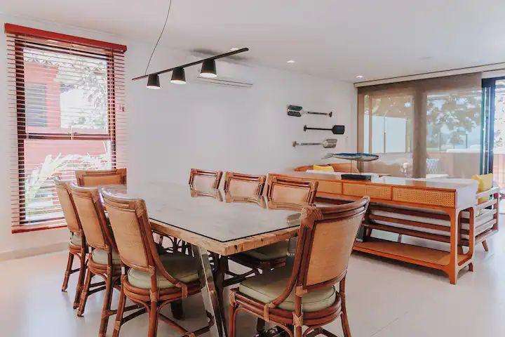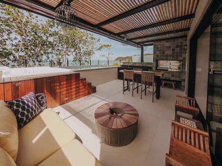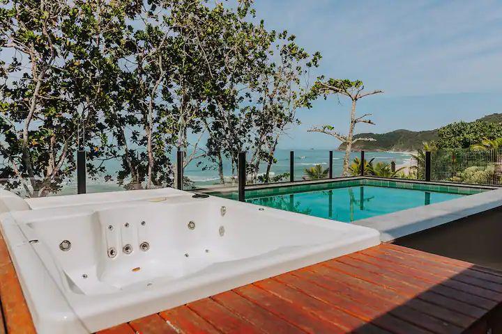 Possui 6 suítes, 3 suites com vista para o mar para o mar. sala em 4 ambientes (sendo jantar, estar, TV e leitura), uma linda piscina com raia , hidromassagem, varanda com espaço gourmet com vista mar.