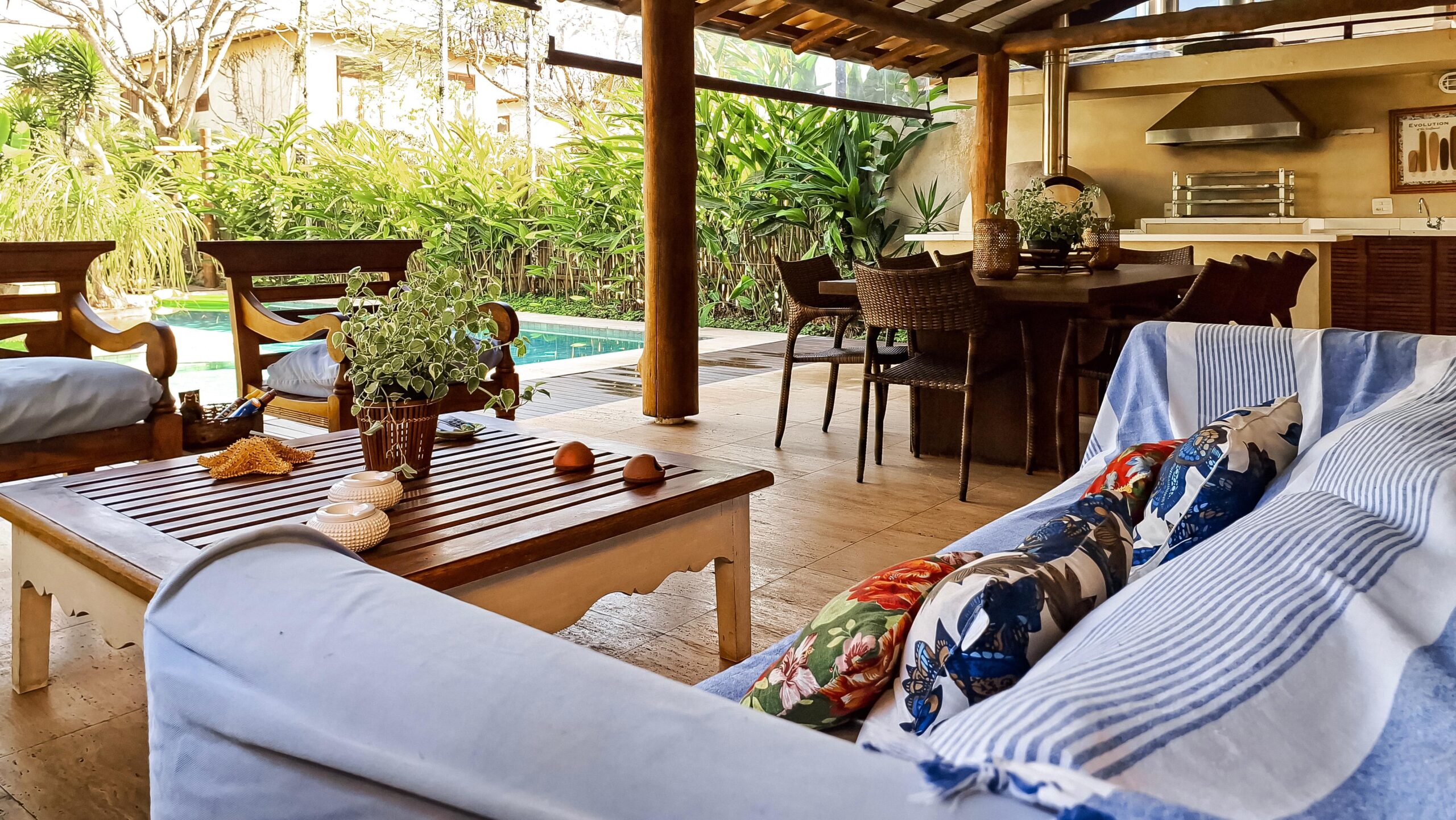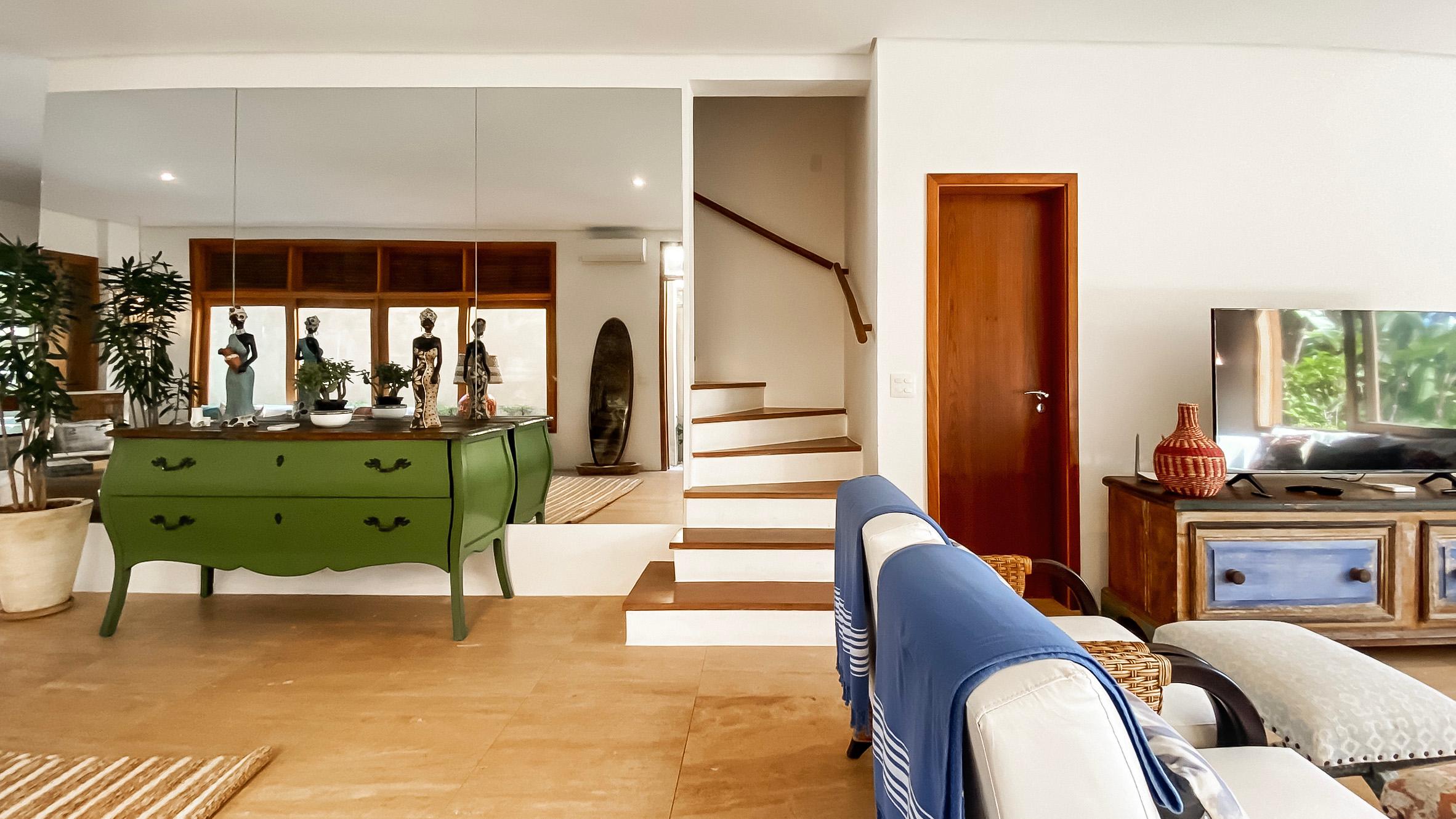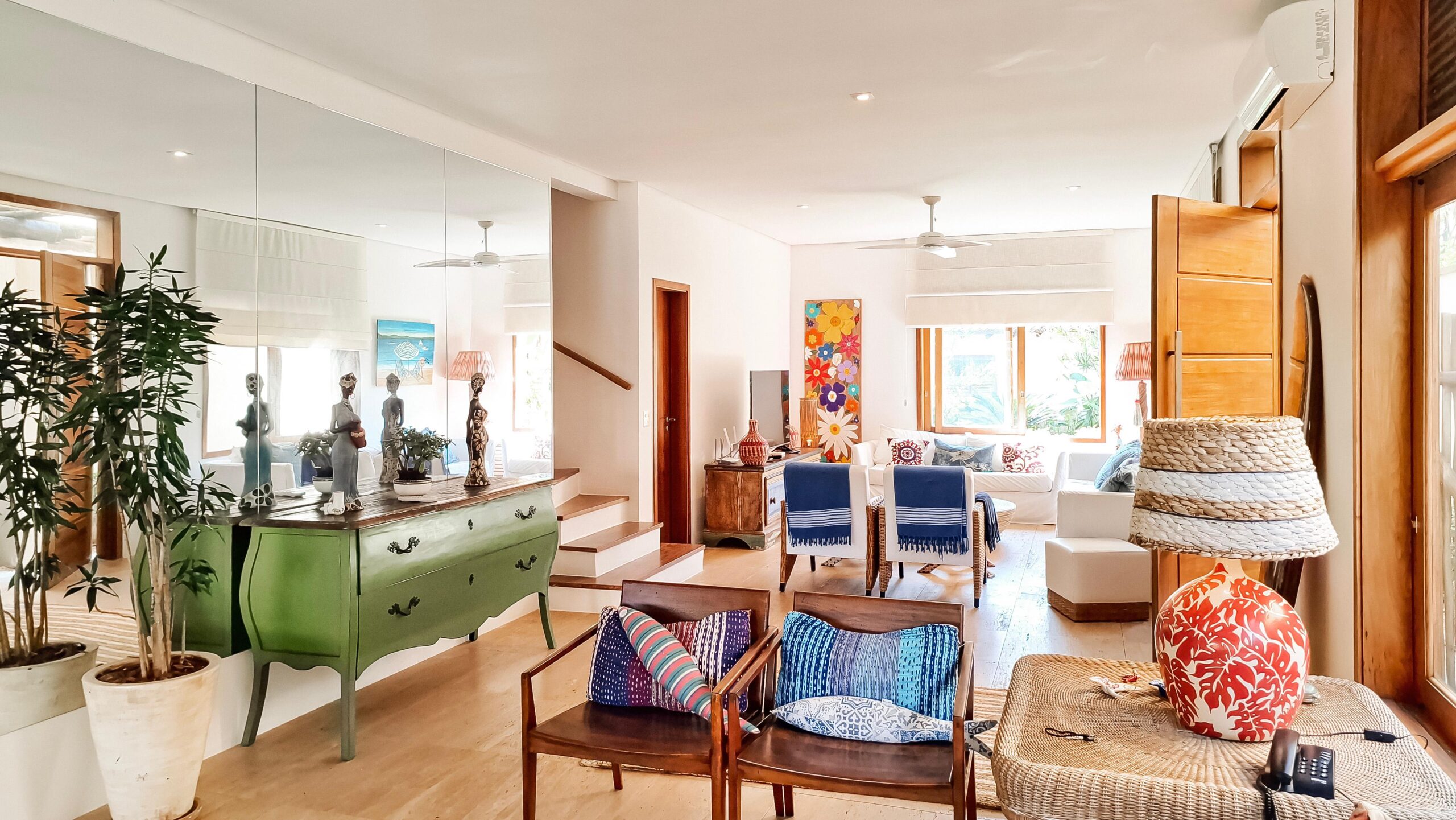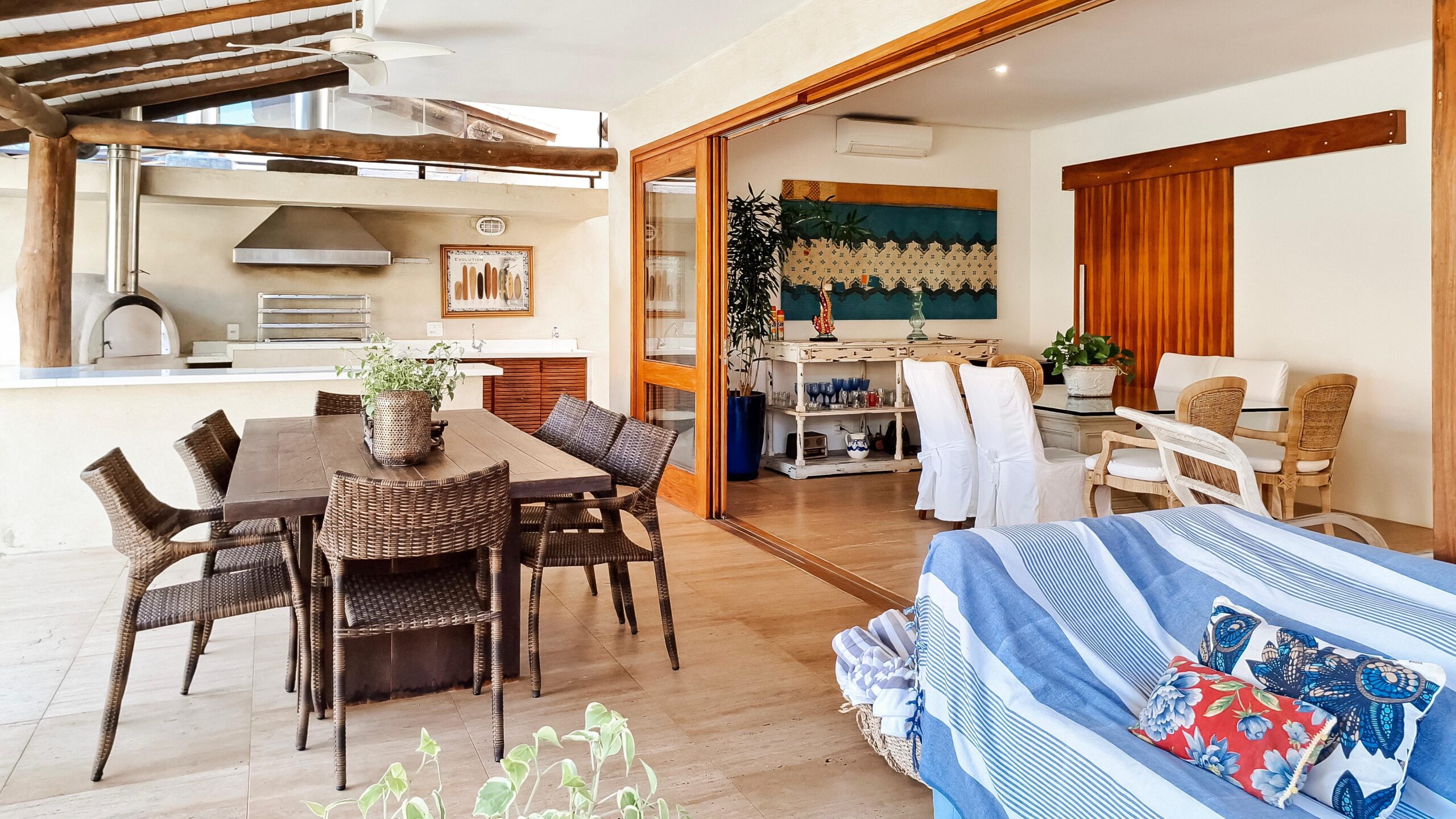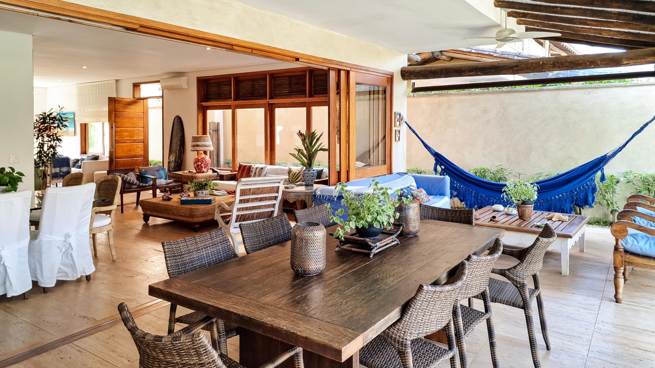 Possui 4 suítes, 3 suites com vista para o mar. sala em 4 ambientes (sendo: jantar, estar, TV e leitura), uma linda piscina e um belo jardim, varanda com espaço gourmet com vista mar: churasqueira e forno de pizza!