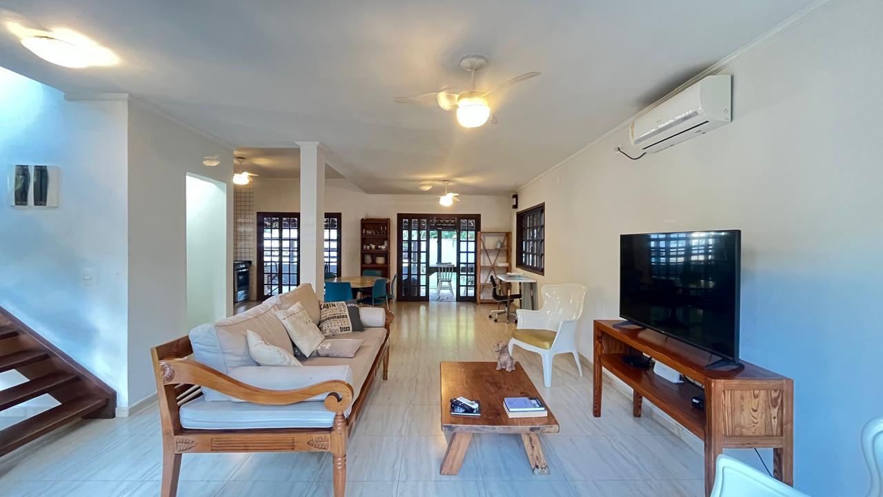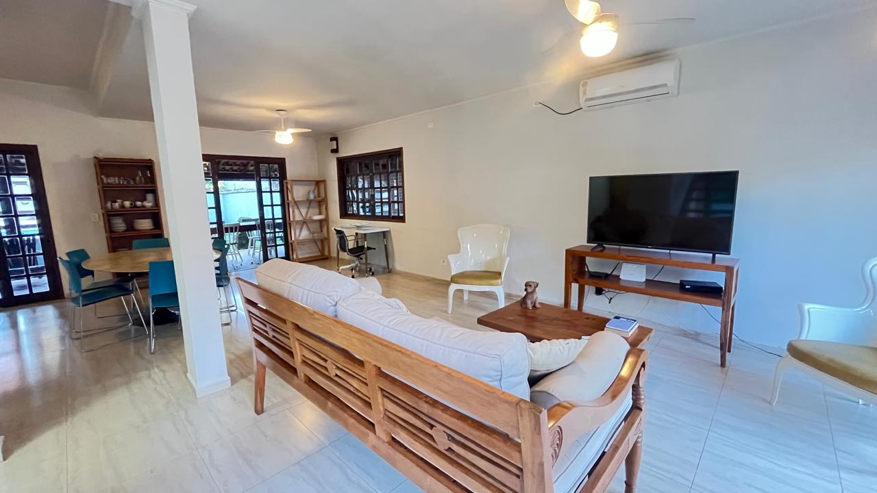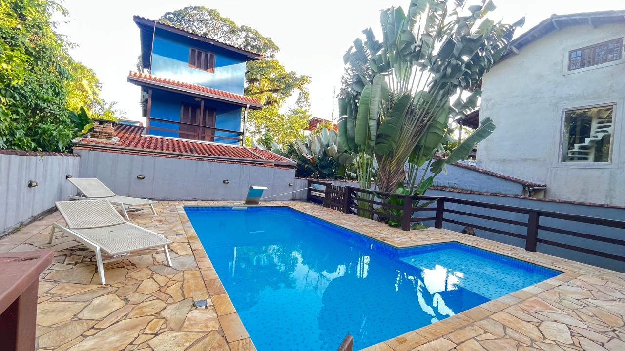 piscina e churrasqueira privativas; jardim (amplo quintal); ar condicionado em todos os cômodos, mobiliada,